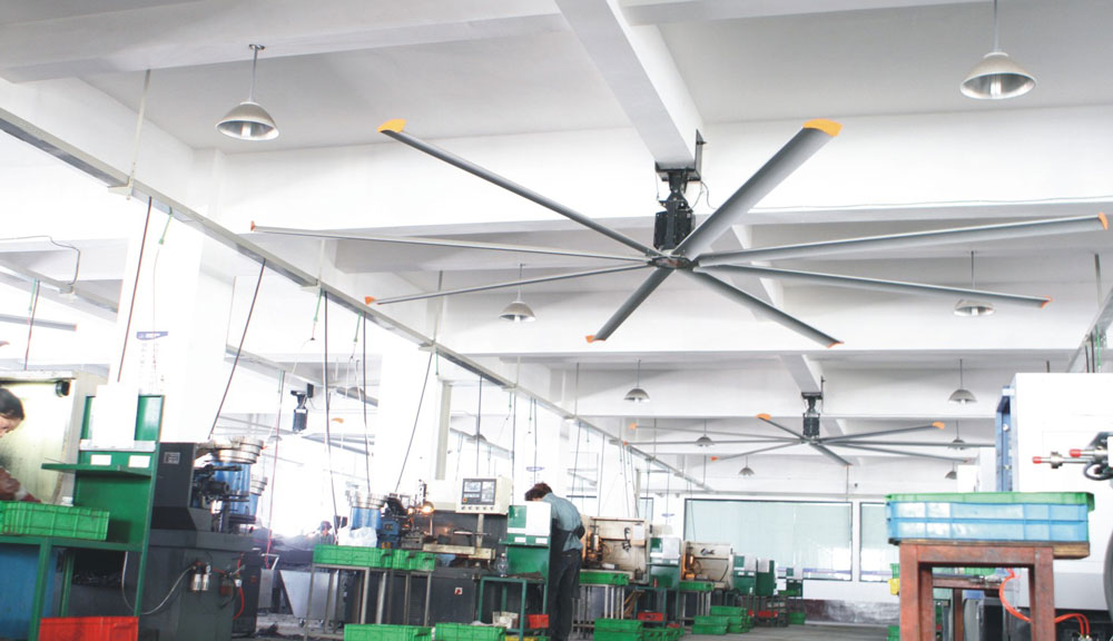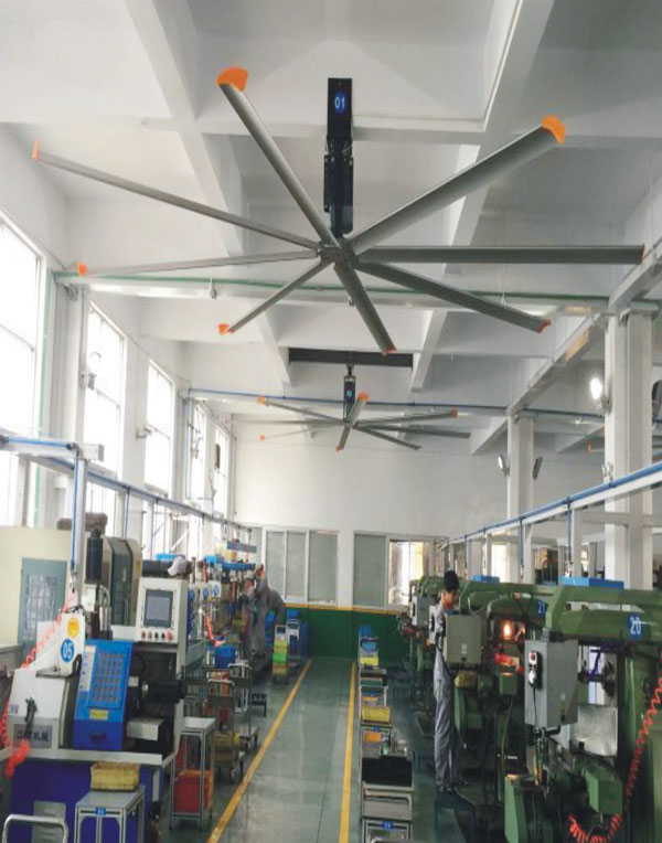 大型工業(yè)吊扇直徑達(dá)5-7米,功率為1.5千瓦,風(fēng)力柔和、無噪音,能滿足200-500平方米的室內(nèi)降溫、通風(fēng)等要求。